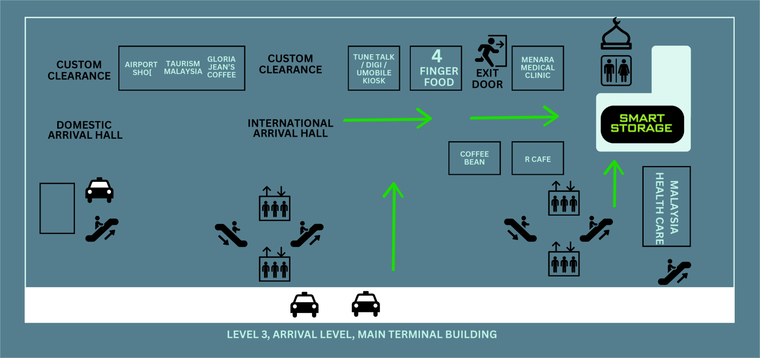 Smart Storage offers customer the opportunity to leave property like travel bags and other luggage for a short or long term in a safe / locker at the Kuala Lumpur International Airport.