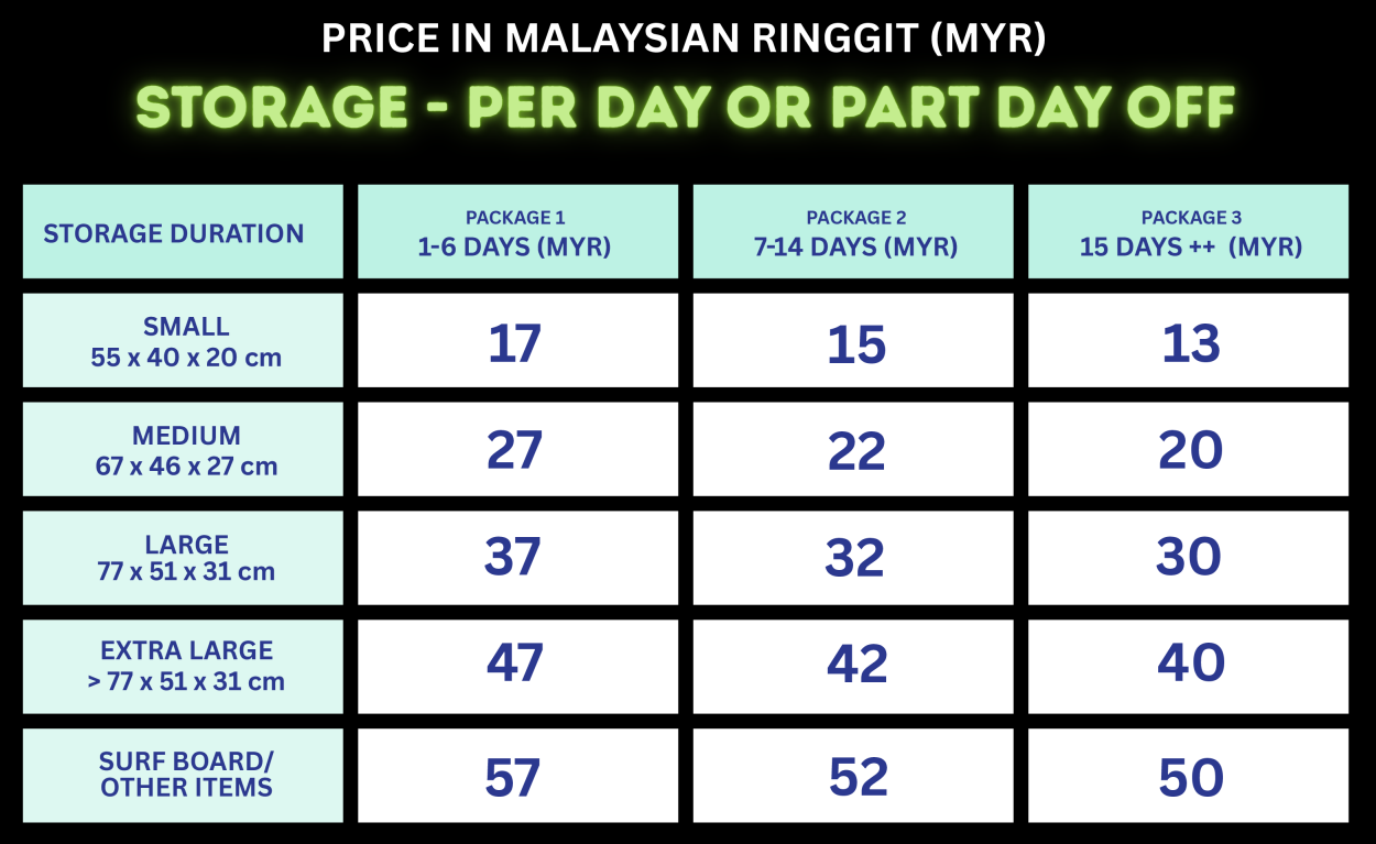 At Terminal 1 and Terminal 2, Kuala Lumpur International Airport, we offer lockers and storage spaces for customers to securely store their luggage, monitored round-the-clock by CCTV and staff attendance (24 hours operation).